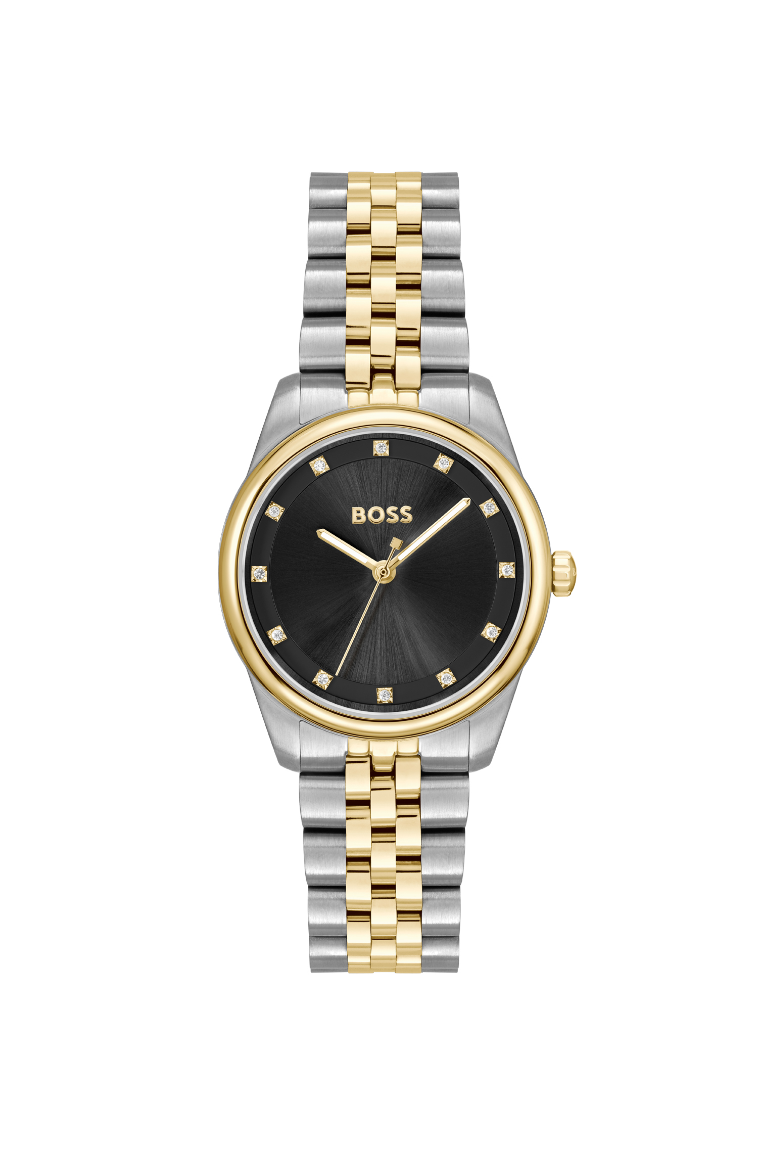 Hugo Boss Graceful Γυναικείο Ρολόι 32mm Μπαταρίας με Ασημί-Χρυσό Μεταλλικό Μπρασελέ και μαύρο καντράν.